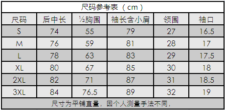 • 尺碼: S  M  L  XL  XXL  XXXL